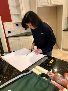 My mom was gracious enough to offer to line all of the cabinets for me. Even though scrubbing those shelves gave me a new appreciation for shelf paper, I still hate measuring and cutting it. Plus when we moved into our current house, I sliced my knuckle open with the rotary cutter.